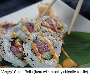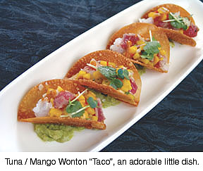 chipotle rouille) to a tuna/mango wonton “taco”,