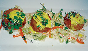 Salt Cod Fritters with cabbage, fennel coleslaw and saffron aioli