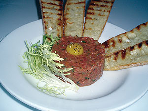 natural beef with capers, shallots, egg and Dijon mustard. We