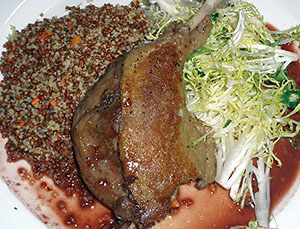 Quinoa pilaf, cranberries, rose and frisee. The duck was very