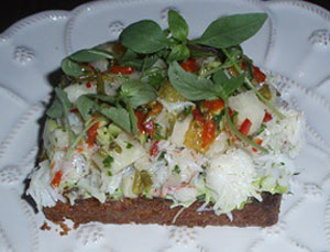 Dungeness Crab Toast with Jicama, Avocado and Green Goddess