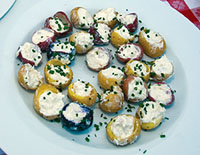 Combine vegetables with dressing, toss, sprinkle with cashews