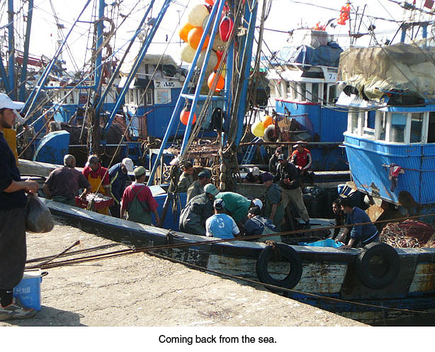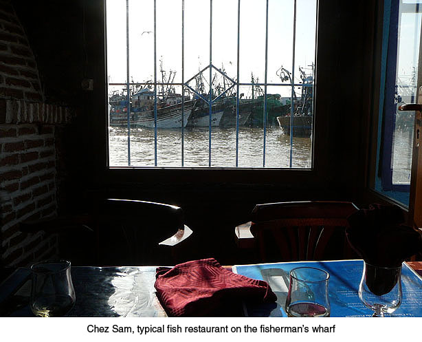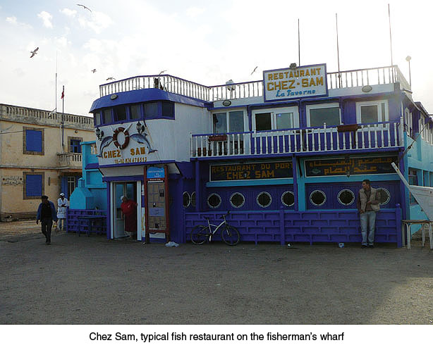 Sam, typical fish restaurant on the fisherman's wharf in Essaouira