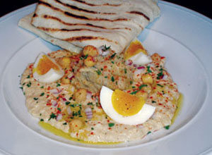 authentic hummus, Ful made from fava beans, cooked eggs and red