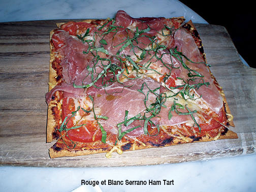 Serrano Ham Tart on thin crispy flatbread with spicy tomato