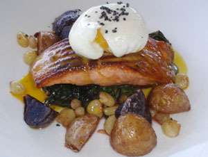 Poached Egg in an aji amarillo hollandaise and Hawaiian Smoked