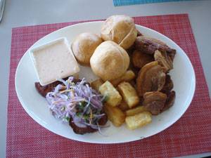 (for two) which was a traditional Peruvian pan con chicharrón,