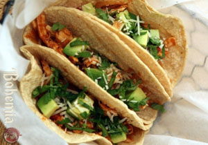 Pork Tinga Tacos with Potatoes, Avocado and Fresh Cheese
