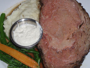 Cut Prime Rib which was perfectly prepared rare as ordered