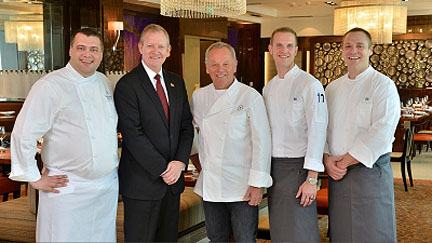 Chef Stephano Andreoli, GM Grek Pirkle, Chef Wolfgang Puck,