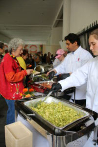 providing delicious hors d'oeuvres to a huge crowd of guests