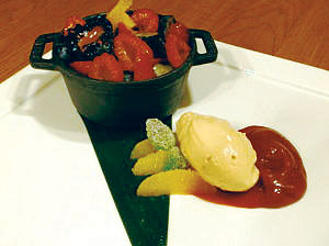 over the strawberry ice cream, and caramelized pineapple