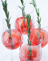 with ice. Top with Prosecco. Garnish with a sprig of rosemary.