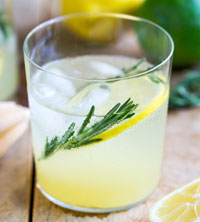 Muddle lemon slice and five rosemary leaves with a teaspoon