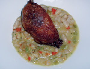 Canard which was seared, crispy skinned duck leg confit served