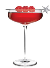 into a martini glass. Garnish with three raspberries on