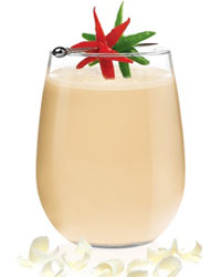 into a white chocolate rimmed rocks glass. Garnish with