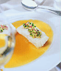 Sea Bass Crusted with Spices, Sweet and Sour Broth |