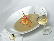 Leek Soup with Caged Oyster, Crème Fraiche and