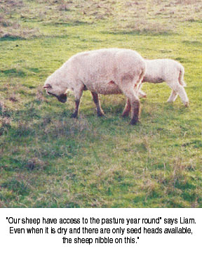 "Our sheep have access to the pasture year round" says Liam. Even when it is dry and there are only seed heads available, the sheep nibble on this."