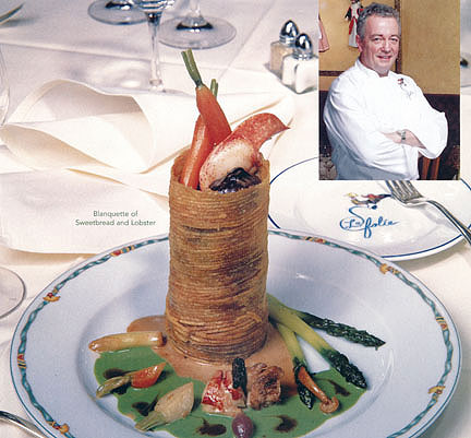 “AIready in my mind I know that it's (a combination of foods) working, "says Passot in his wonderful French accent. “For example, I make a Pig's Feet, Lobster and 5weet Bread Terrine. This is not always something chefs would combine any of these three ingredients together. But they go very well together because of my classical training."