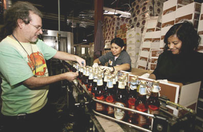 bottles at his bottling plant in Los