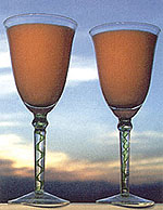 two 20 oz. chilled glasses. Top with 4 tablespoons of cnushed