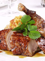 Molasses Duck with Smoked Vegetable Dressing and Peach Chutney